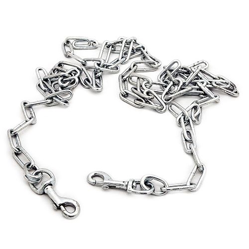 - A heavy duty tie-out chain featuring two (2) snap hooks