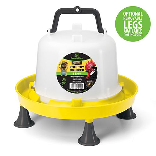 - CLICK HERE For removable legs which are available separately. They lift the drinker off the ground by 65mm to increase hygiene by reducing ground contamination of the water and importantly allowing the animals to drink more comfortably
