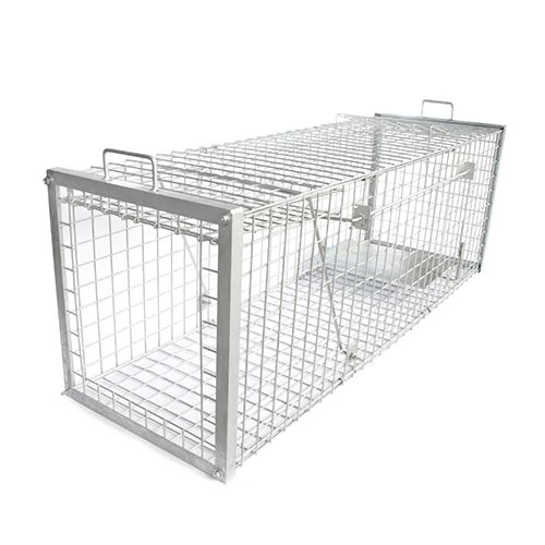 - A extra large heavy duty galvanised steel construction trap with 2 carrying handles